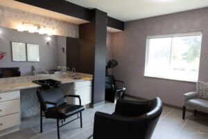 - Memory Care ADA Studio Suites (327 sq ft): These suites offer enhanced accessibility and extra floor space to ensure residents can move safely and comfortably with specialized support.